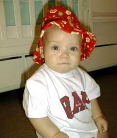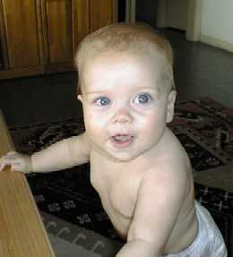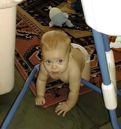 I am finally back in the news. Grandpa has been very busy and apologizes for not keeping you informed on my progress. That is ok because I still love him anyway. I have changed quite a bit in the past couple of months. I now have 7 teeth and I started crawling about 3 weeks ago. As you can tell from my vital statistics, I am eating more and more real food and really enjoying it! Hopefully you will enjoy some of my new pictures that were taken in the last day or two. I promise to send more pictures soon.