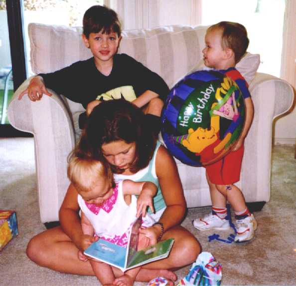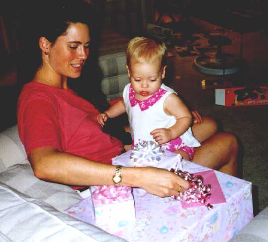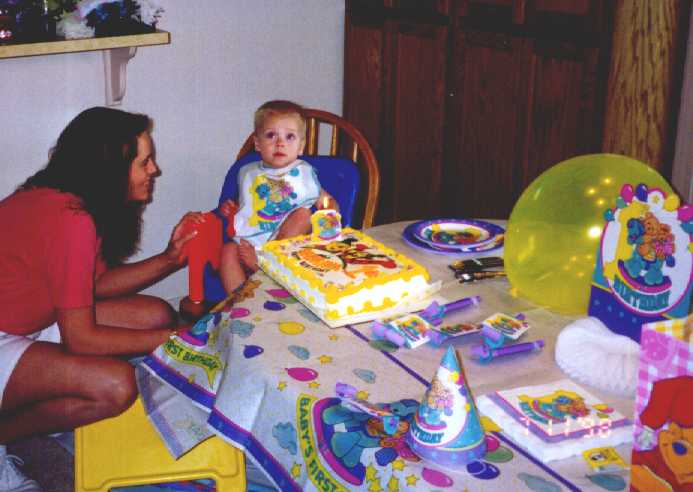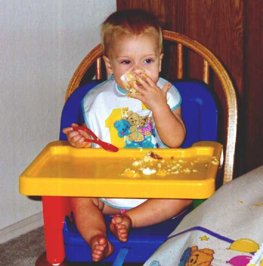 I had a great first Birthday!! I am now back in the good old USA. I have been walking for the past month and enjoying my new found freedom much to my Mom and Dad's chagrin. You can tell by my new statistics that I am much more active and not gaining weight as fast. I have 9 teeth. I really like feeding myself, which keeps my weight down because I get more on the outside than I do on the inside. Well, enough talking for now and I hope you enjoy my Birthday pictures!!!