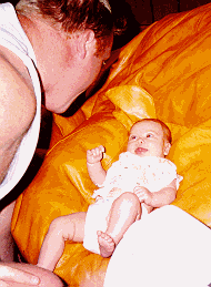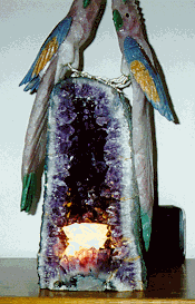 These photos are a few of my parent's recent favorites. The pictures are larger than usual and will take a little longer to download so be patient. Soon, I hope to share a few pictures from my trip to the United States. It is good to be back home and spend a little time with my Dad. Mom and I had a great trip, which I will tell you about later. We just updated my vital statistics so if you haven't been there yet, make sure to visit that page. One thing I really enjoy doing is smiling back at people as you can see from some of these pictures. For those of you who haven't visited Brazil, the birds below represent art native to Brazil. I think my Dad and Mom are trying to acquire things that will be difficult for me to break as I get more active. The "lamp" is just over 2' tall and hhheeeaaavvvyyyy!