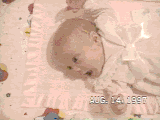 It has been one month! Can you believe it? So many things have happened. I have now seen all of my grandparents even though they live 4,000/6,000/12,000 miles away. Pretty cool, huh! My Mom says that I am growing like a weed. I am starting to focus on faces and recognize voices. I like looking at my animal friends in my bed and I love looking at lights. I received my first two shots and got my passport photos taken. And guess what? For my one month birthday, my parents celebrated by going out without me! :-(